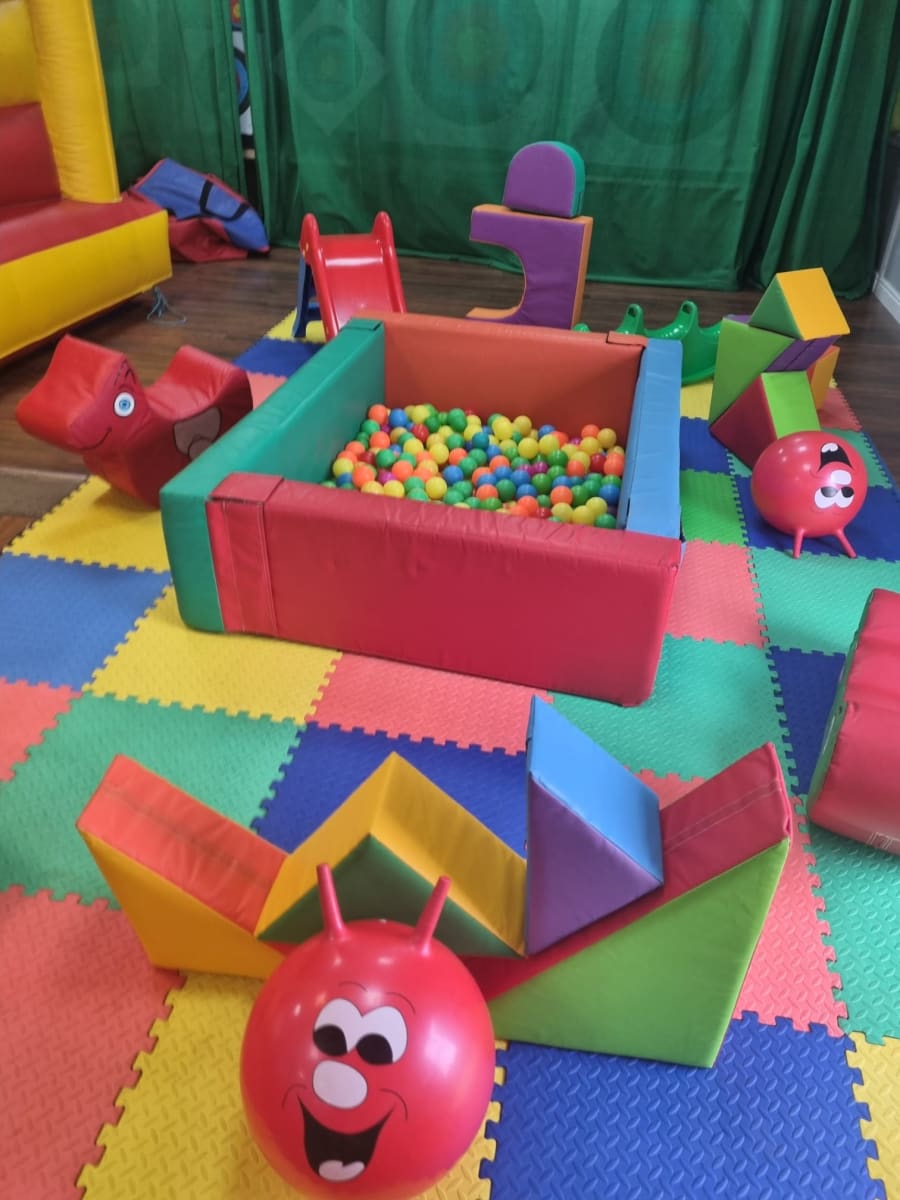 Our comprehensive soft play setup includes an expansive array of brightly coloured protective foam floor tiles, ensuring a safe and inviting play area of 15x15 ft. At the heart of the excitement is our 6x4 ft ball pit, brimming with colourful balls for endless fun. Additionally, the soft play set is adorned with an assortment of fun foam shapes and blocks, fostering creativity and physical play. The adventure deepens with a pop-up tent and tunnel, encouraging explorative play, alongside soft animal shapes and ride-on scuttle bugs, which are sure to be a hit with the tiny guests.