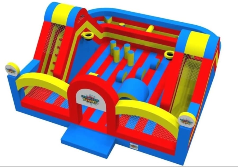 Our Large Inflatable Play Park is a spectacular all-in-one entertainment solution, perfect for big events, community gatherings, and family fun days across Merthyr Tydfil, Aberdare, Caerphilly, Glynneath, Neath, and throughout Mid-Glamorgan. Spanning an impressive 30 x 30 ft, this play park is packed with activities including 2 slides, a bouncy castle area, bish bash obstacles, and more, guaranteeing endless fun and excitement for children of all ages.